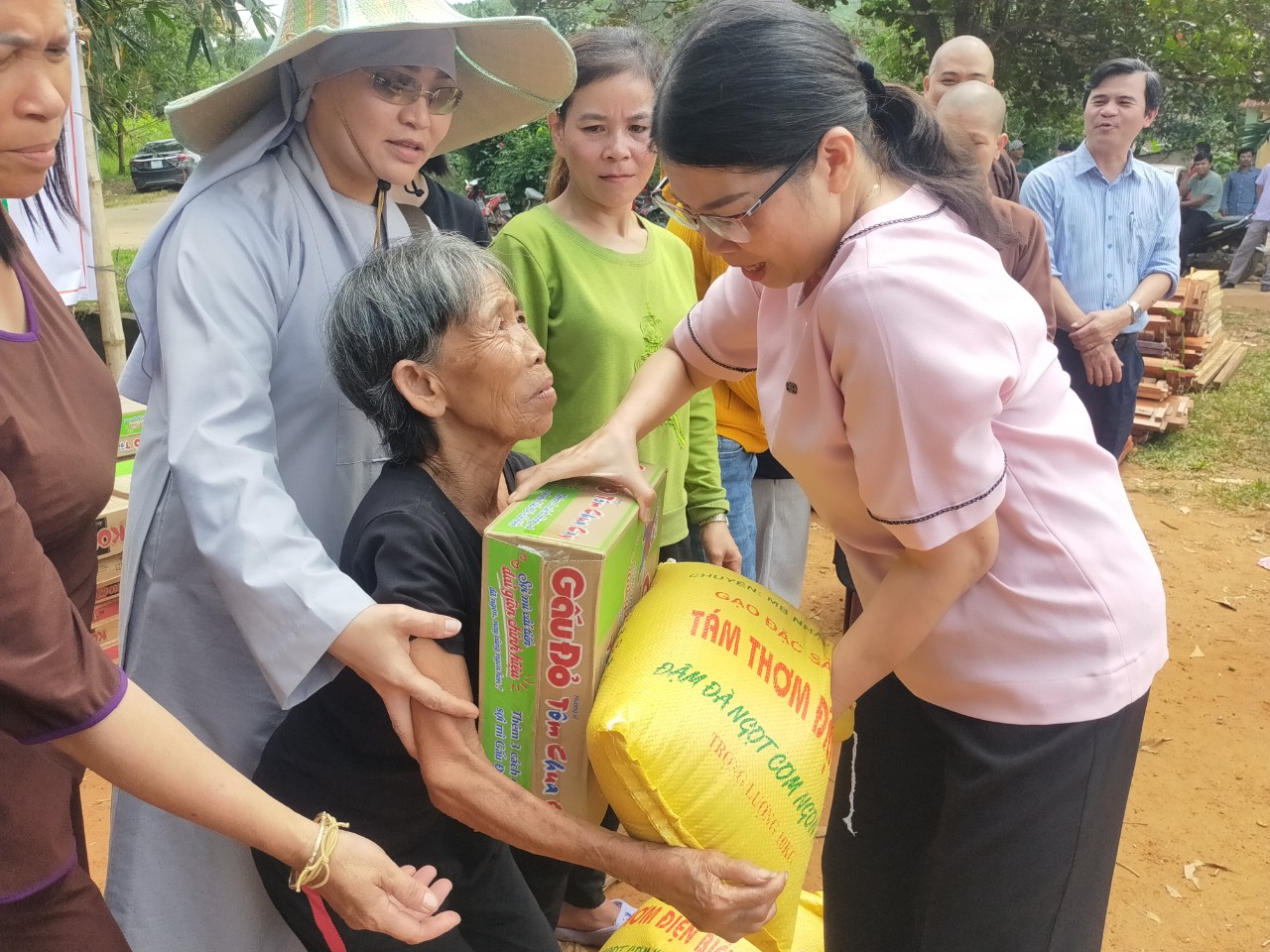 Quà tặng hỗ trợ được Chùa Quang Minh (Hưng Yên) cùng các mạnh thường quân CLB Thiện nguyện Từ tâm, nhóm thiện nguyện Hương Sen, chùa Đại Phúc - Yên Phương trao tặng có tổng kinh phí trên 500 triệu đồng. Bao gồm 61 bộ giường gỗ kèm chiếu, mỗi bộ 7,2 triệu đồng và 200 phần quà gồm nhu yếu phẩm (gạo, mì tôm) và giày dép cho toàn bộ số hộ tại thôn Bồ Hòn, xã Bình Thành.