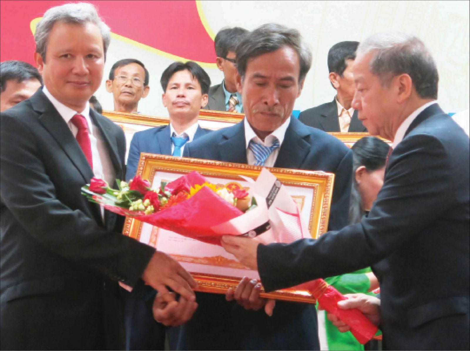 UVTƯ Đảng, Bí thư Tỉnh ủy Lê Trường Lưu (trái) và Phó Bí thư Tỉnh ủy, Chủ tịch UBND tỉnh Phan Ngọc Thọ (phải) trao danh hiệu Mẹ Việt Nam Anh hùng cho các thân nhân