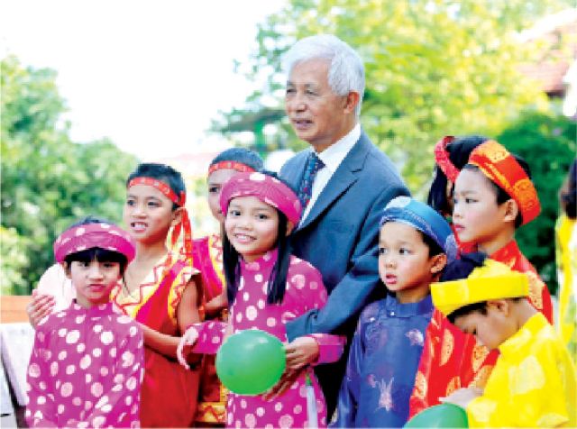 Giáo sư Trần Thanh Vân với con trẻ ở Làng trẻ em SOS Huế. Ảnh: nhân vật cung cấp
