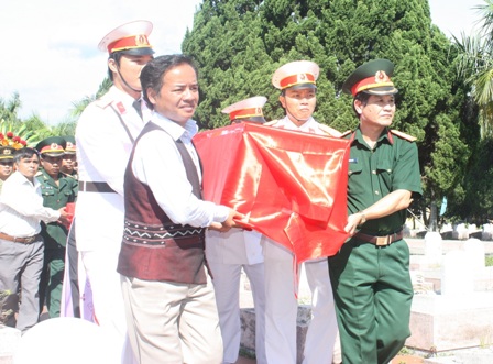 Thủ trưởng Bộ CHQS tỉnh và lãnh đạo huyện A Lưới cùng các đại biểu đưa hài cốt liệt sĩ về nơi an nghỉ cuối cùng