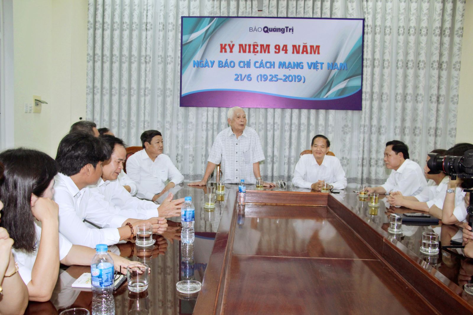 Báo Quảng Trị tổ chức gặp mặt hai cựu tổng biên tập gặp mặt ôn lại truyền thống trong đó có ông Trần Trọng Tốn. Ảnh Thành Dũng