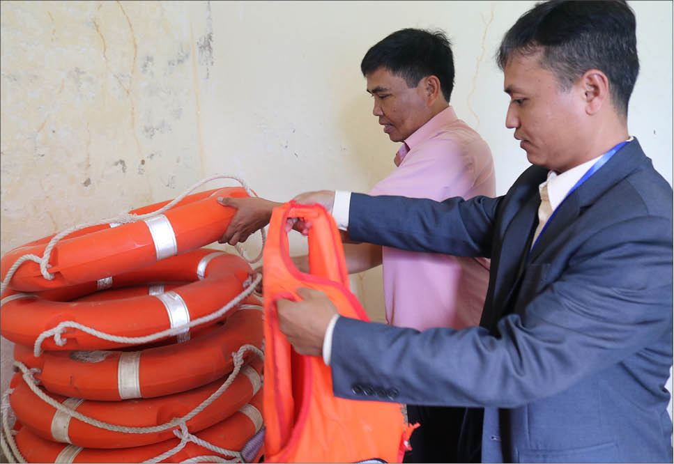 Cán bộ UBND xã Hồng Vân kiểm tra các phương tiện cứu hộ trước mùa mưa bão