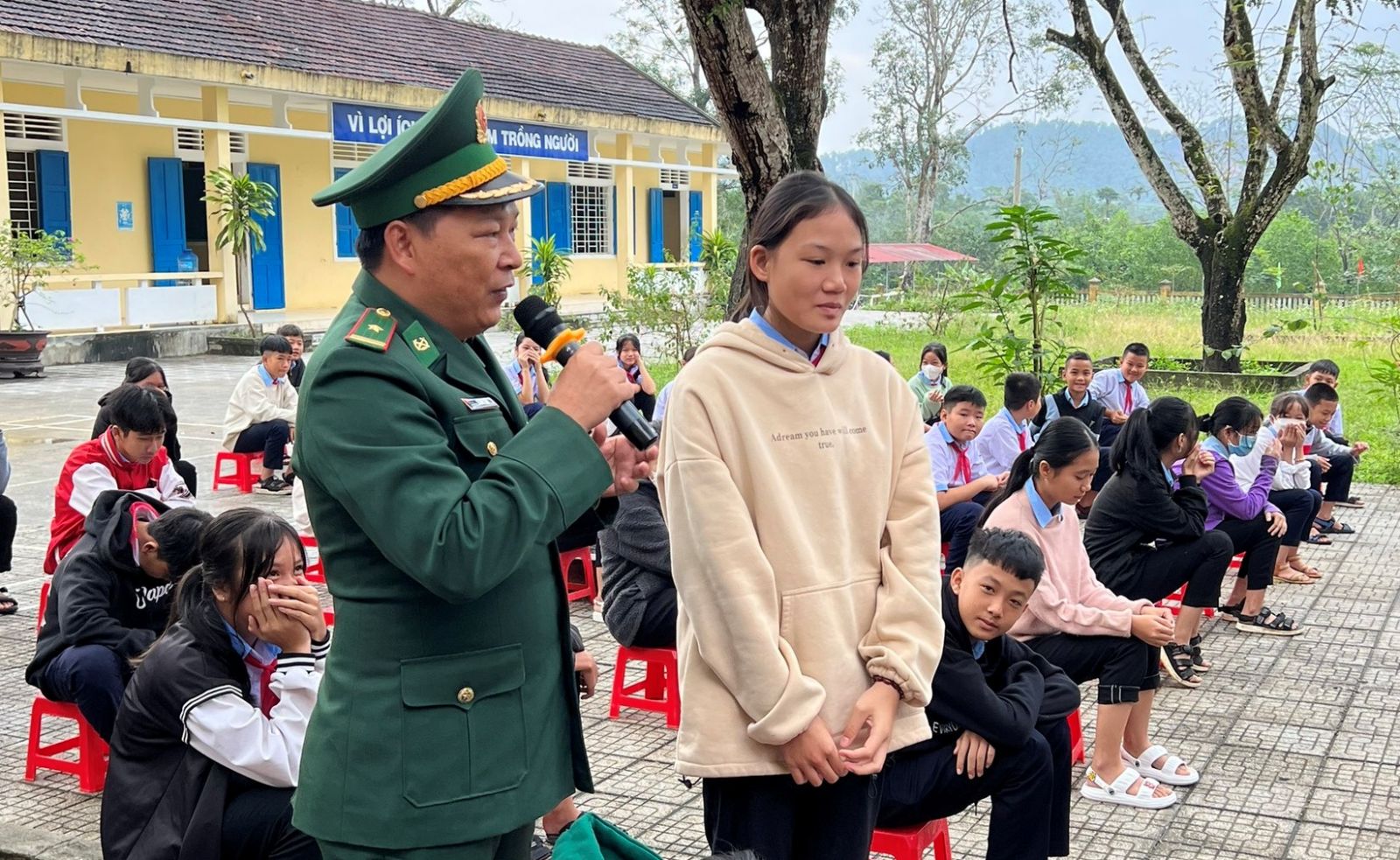 HNN.VN - Ngày 12/12, Tiểu đoàn Huấn luyện - Cơ động, Bộ Chỉ huy Bộ đội Biên phòng (BĐBP) tỉnh, do Thiếu tá Lê Anh Tuấn, Chính trị viên tiểu đoàn phụ trách, đã tổ chức tuyên truyền giáo dục truyền thống cho cán bộ, giáo viên, học sinh Trường THCS Tôn Thất Bách, xã Hương Thọ (TP. Huế).