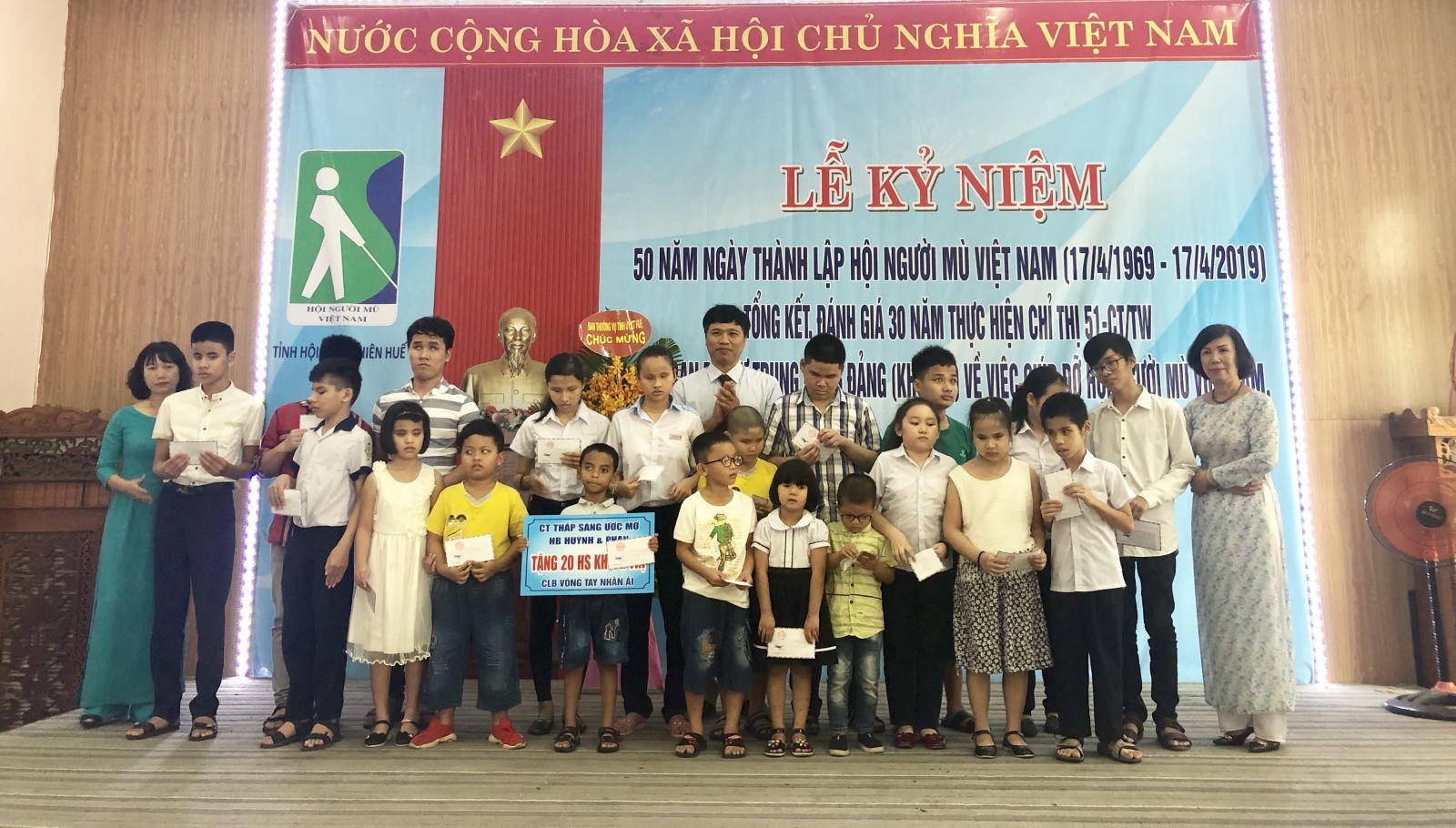 Dịp này, hội trao 31 kỷ niệm chương “Vì sự nghiệp người mù” cho các cá nhân, tổ chức có nhiều đóng cho sự phát triển của hội trong thời gian qua. Ngoài ra, trao 30 suất học bổng, tổng trị giá 13 triệu cho 30 học sinh, sinh viên mù có hoàn cảnh khó khăn.