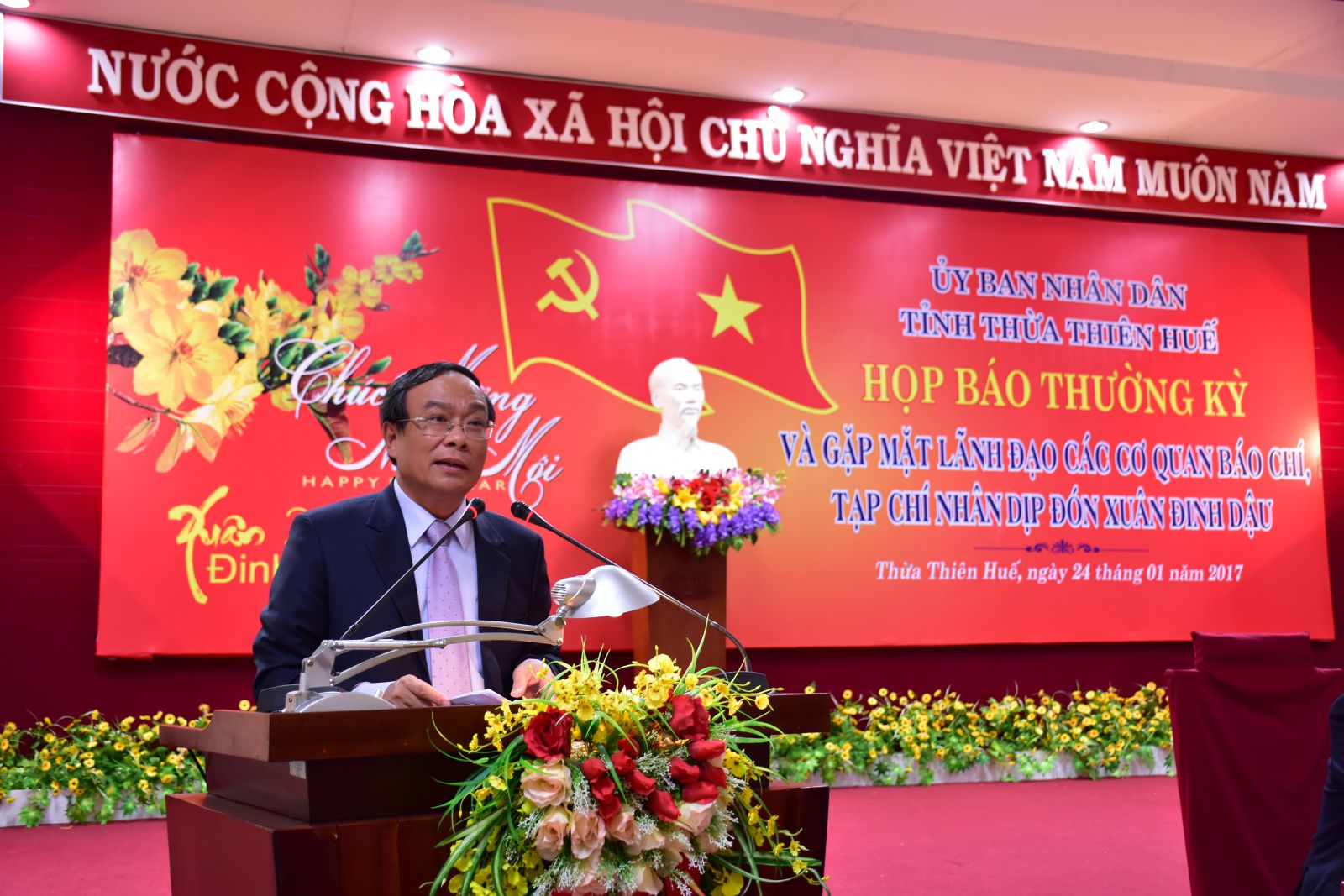 Tại buổi họp báo, Chủ tịch UBND tỉnh Nguyễn Văn Cao thông báo công tác chuẩn bị tết; tình hình, kế hoạch triển khai nhiệm vụ kinh tế-xã hội 2017 của tỉnh. Cụ thể, tỉnh sẽ tìm cách đầu tư cho giao thông vận tải để tăng lượng khách; tập trung nâng chất lượng dịch vụ, thời gian lưu trú; kết nối với với các đơn vị, doanh nghiệp trong công tác xã hội hóa truyền thông, quảng bá; tập trung thu hút đầu tư, nhất là khu vực cảng Chân Mây và các khu công nghiệp; tăng cường đối thoại, tiếp xúc, quảng bá, tạo điều kiện cho doanh nghiệp phát triển...