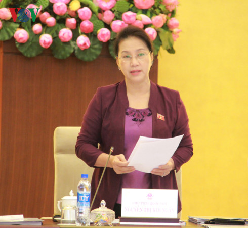 Phát biểu khai mạc phiên họp, Chủ tịch Quốc hội Nguyễn Thị Kim Ngân cho biết, kỳ họp này, Ủy ban Thường vụ Quốc hội sẽ xem xét cho ý kiến về 4 dự án luật còn ý kiến khác nhau đã được Quốc hội cho ý kiến lần đầu tại kỳ họp thứ 3, gồm: Luật Bảo vệ và phát triển rừng (sửa đổi); Luật Thủy sản (sửa đổi); Luật Quản lý nợ công sửa đổi; Luật Tố cáo sửa đổi.