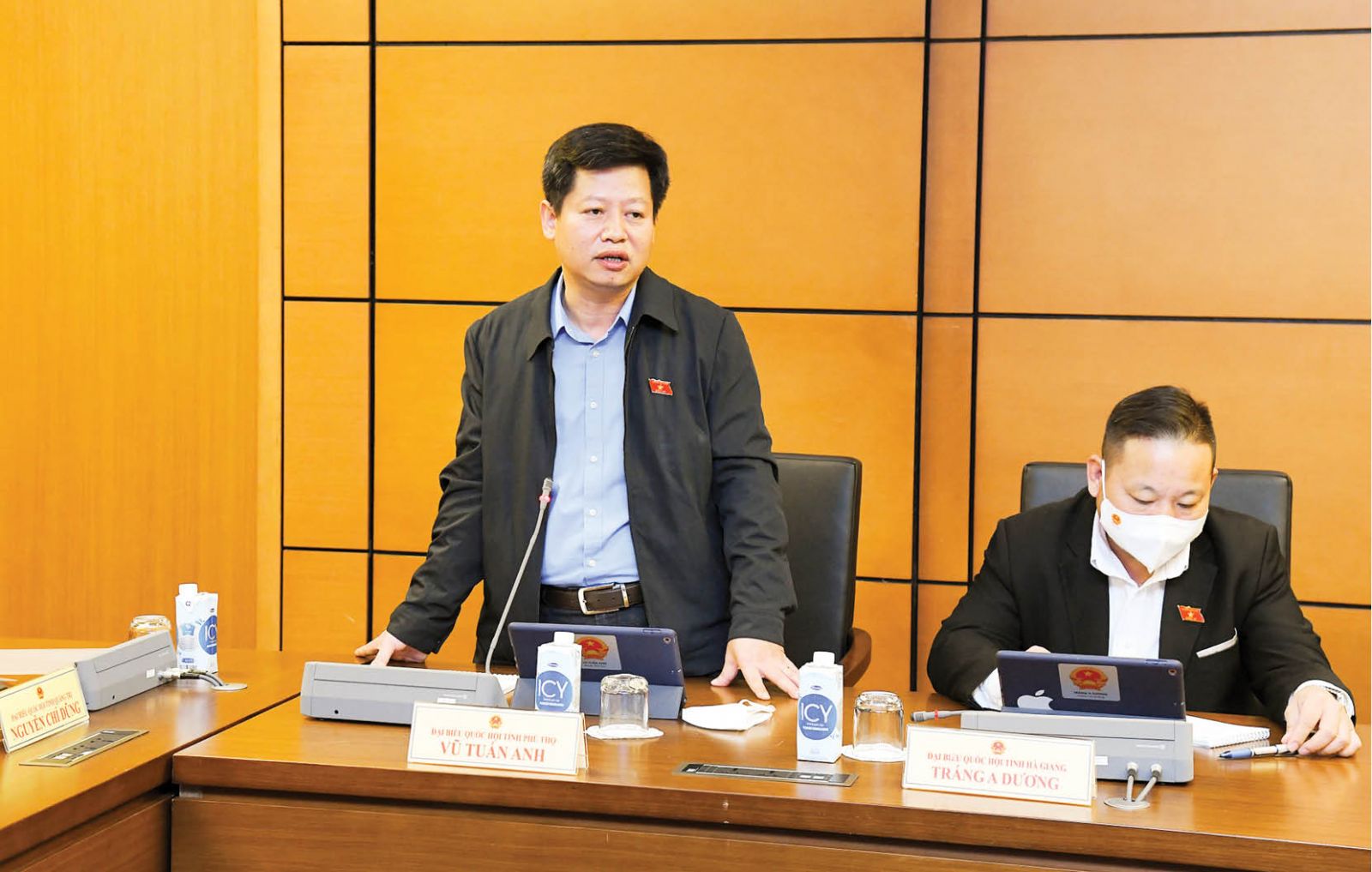 Tán thành với đề xuất thành lập Quỹ bảo tồn di sản Huế, đại biểu Vũ Tuấn Anh, Đoàn ĐBQH tỉnh Phú Thọ đề nghị quy định rõ trong Nghị quyết nguyên tắc quản lý, sử dụng Quỹ, đặc biệt là về tổ chức bộ máy. Ảnh: QH