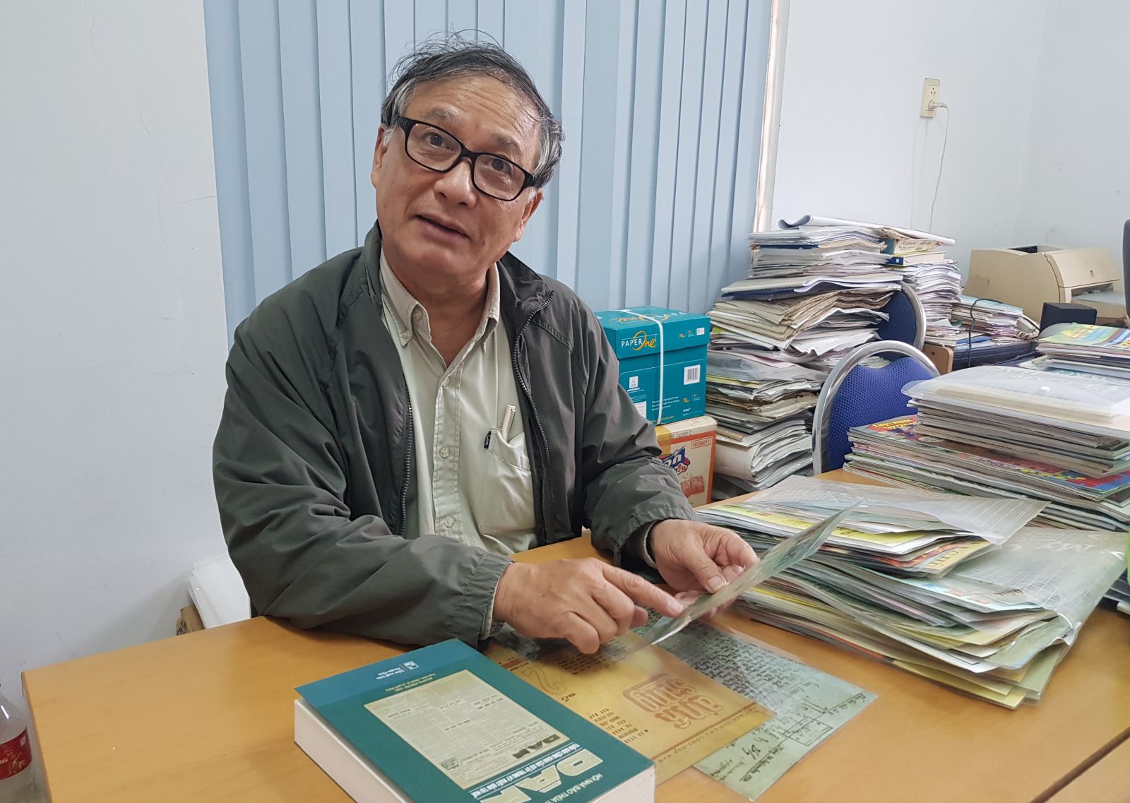 Nhà nghiên cứu Dương Phước Thu cùng một số tư liệu hình ảnh sưu tầm phụ vụ trưng bày tại hội thảo