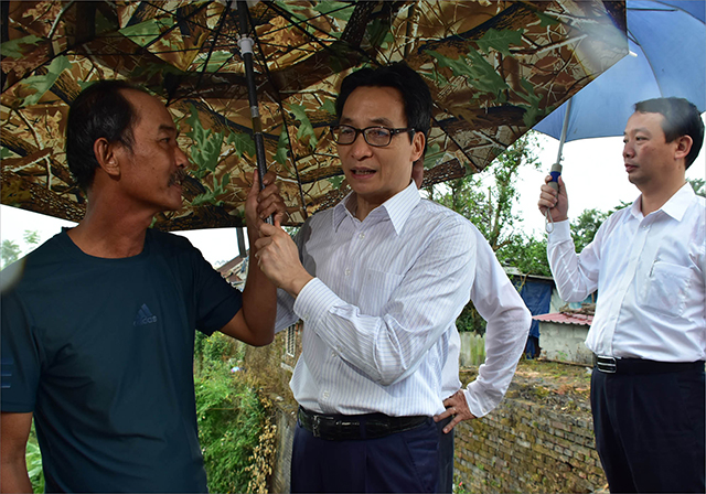 Phó Thủ tướng Vũ Đức Đam trò chuyện với người dân thuộc diện di dời ở khu vực Thượng thành