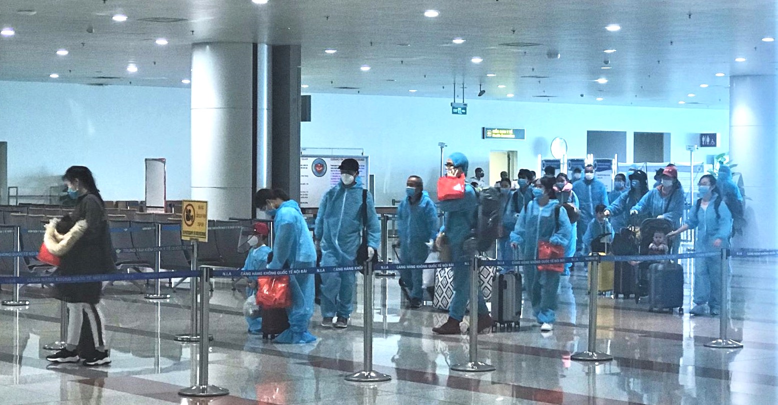 HNN.VN - 310 công dân Việt Nam đầu tiên từ Phần Lan và Thụy Điển đã trở về nước an toàn trên chuyến bay mang số hiệu VN2 của Vietnam Airlines. Chuyến bay hạ cánh tại Nội Bài trong sáng nay (6/6).