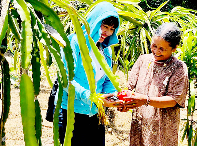 Bà Kăn Thiết “khoe” thanh long đang phát triển