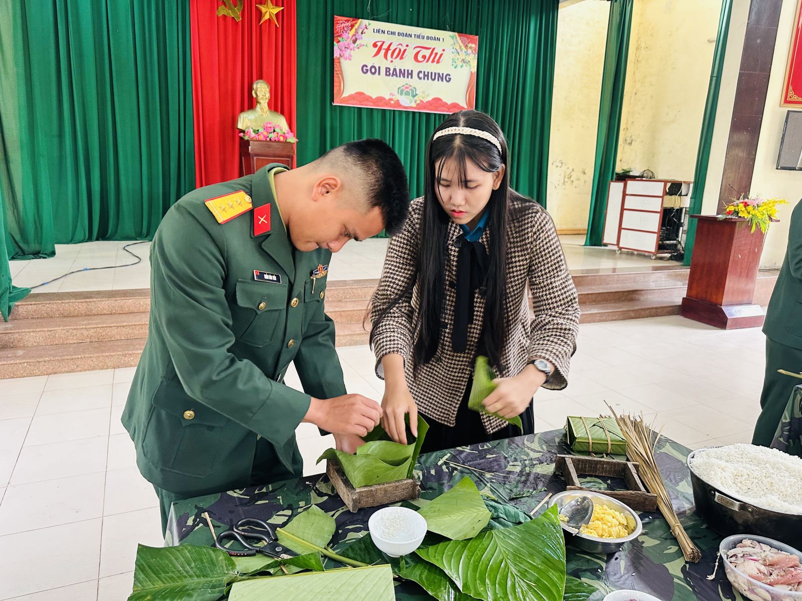 Mở đầu cho các hoạt động vui xuân ở tiểu đoàn là hội thi gói bánh chưng đẹp. Bốn đội thi là 4 cán bộ, chiến sĩ đơn vị cùng 4 đoàn viên đoàn của đơn vị kết nghĩa tham gia gói bánh chưng. Gói bánh chưng có lẽ cũng không quá khó nhưng không phải là dễ đối với những người lần đầu thực hiện.