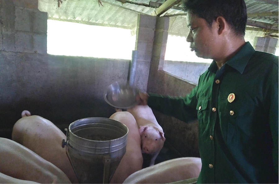 CCB Hồ Văn Hồng chăm sóc đàn heo của gia đình