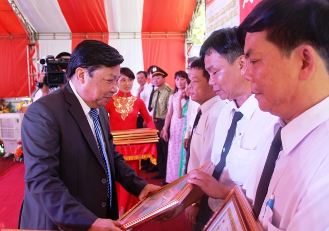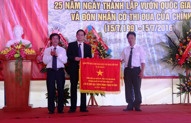 Ông Nguyễn Văn Phương trao cờ thi đua của Chính phủ cho đại diện Vườn Quốc gia Bạch Mã