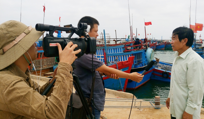 Phóng viên Báo Hà Nội mới tác nghiệp