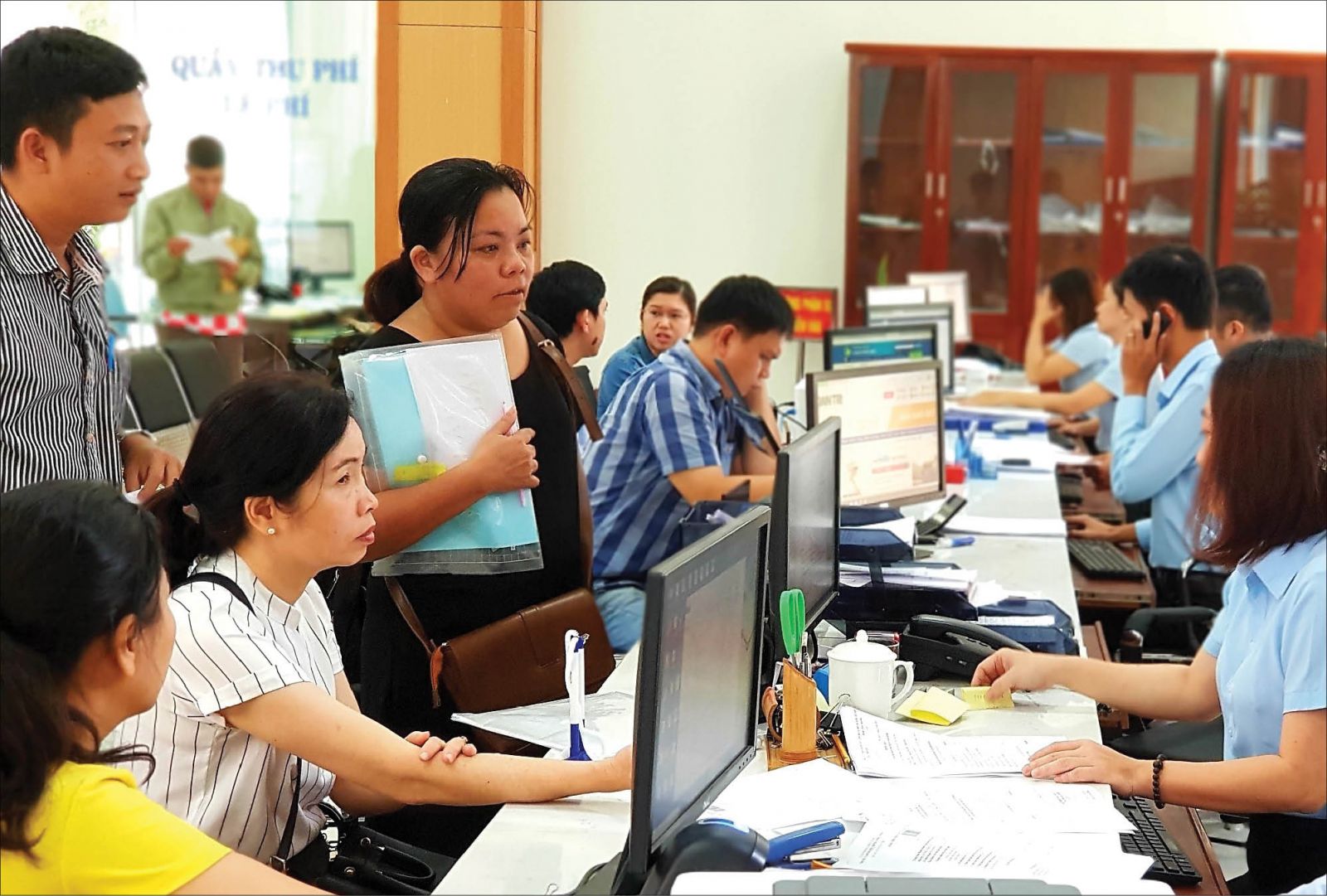 Thân thiện, nhiệt tình hướng dẫn, giải quyết hồ sơ cho người dân. Ảnh: Đăng Tuyên