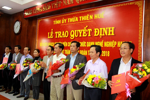 Đợt này, có 34 công chức, viên chức Khối Đảng, Mặt trận và các đoàn thể trong tỉnh vinh dự được nhận các Quyết định của Ban Thường vụ Tỉnh ủy. Trong đó, có 3 phóng viên được thăng hạng phóng viên chính; 1 chuyên viên hạng chuyên viên chính và 30 công chức được nâng ngạch chuyên viên chính.