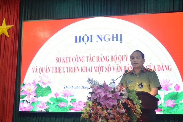 Kết luận hội nghị, UVTV Tỉnh ủy, Đại tá Nguyễn Quốc Đoàn, Bí thư Đảng ủy, Giám đốc Công an tỉnh đánh giá cao sự nỗ lực của các đảng bộ, chi bộ trực thuộc, đồng thời chỉ đạo các đảng bộ, chi bộ tiếp tục làm tốt công tác giáo dục chính trị, tư tưởng cho dảng viên, cán bộ, chiến sỹ; thực hiện nghiêm túc, có hiệu quả công tác xây dựng Đảng, xây dựng lực lượng; tập trung thực hiện hiệu quả các biện pháp, giải pháp bảo đảm an ninh, trật tự trên địa bàn dịp Festival nghề truyền thống Huế sắp tới.