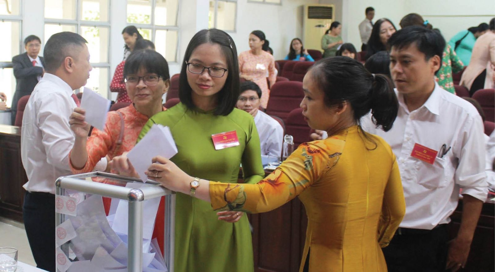 Đại biểu bỏ phiếu tại Đại hội Đảng bộ Trường cao đẳng Sư phạm Thừa Thiên Huế