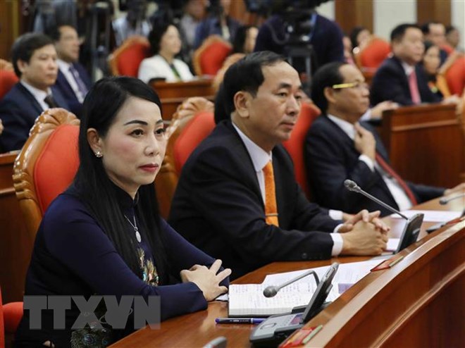 Các đồng chí Ủy viên Trung ương Đảng dự hội nghị. (Ảnh: Phương Hoa/TTXVN)