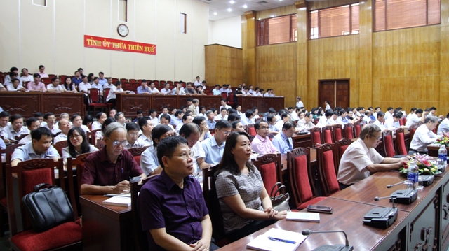 Ủy viên Bộ Chính trị, Thường trực Ban Bí thư Trần Quốc Vượng dự và phát biểu chỉ đạo hội nghị. Phó Bí thư Thường trực Tỉnh ủy Bùi Thanh Hà; Phó Bí thư Tỉnh ủy, Trưởng Đoàn ĐBQH tỉnh, Chủ tịch UBND tỉnh Phan Ngọc Thọ dự tại điểm cầu Thừa Thiên Huế.