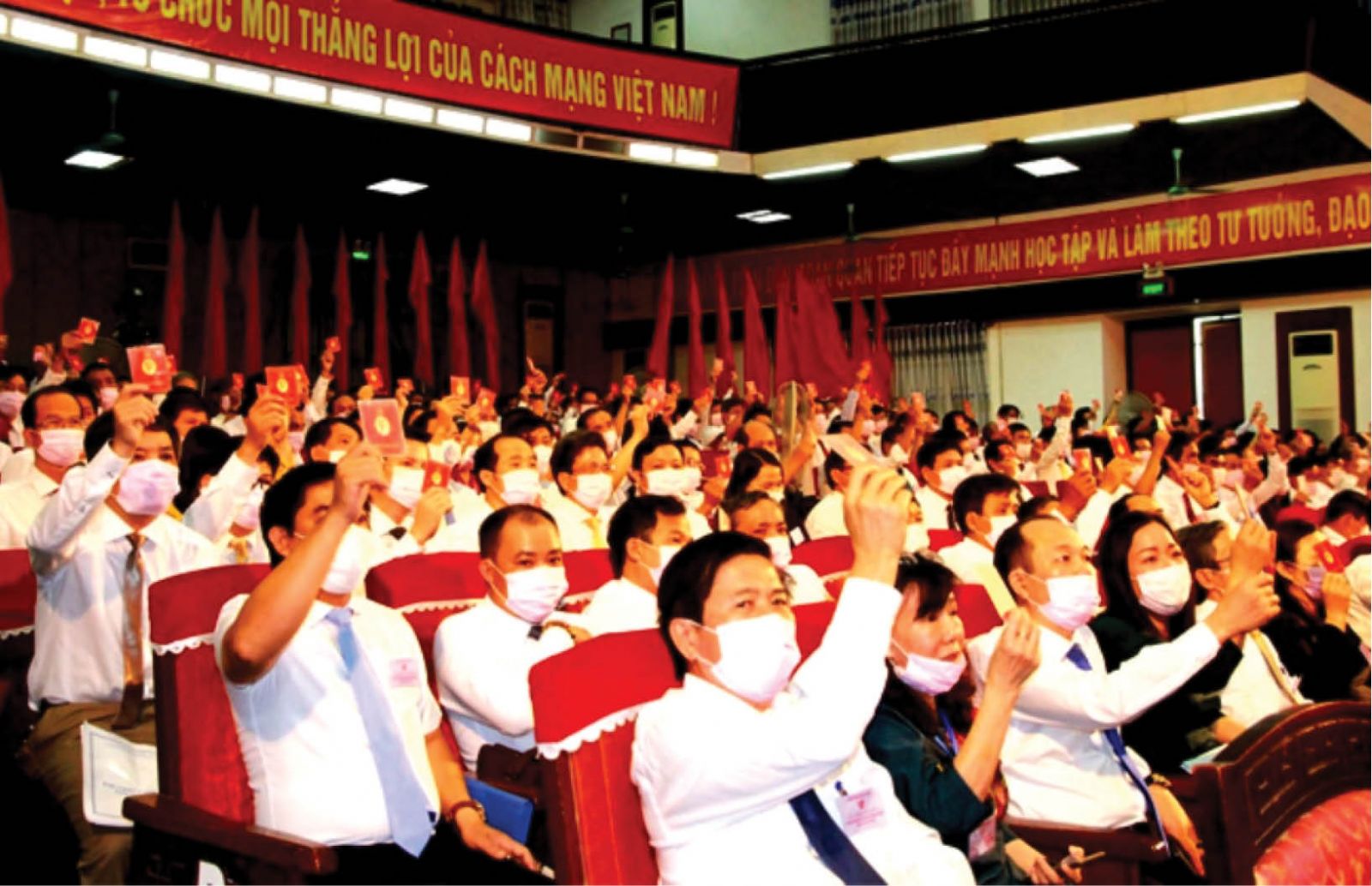 Đại biểu tham dự Đại hội Đảng bộ Khối Cơ quan và Doanh nghiệp tỉnh biểu quyết, thông qua nhiều nội dung quan trọng