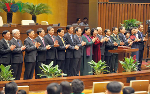 Quốc hội khóa XIV đã chính thức ra mắt bộ máy lãnh đạo cao nhất (Ảnh: Hoàng Long)
