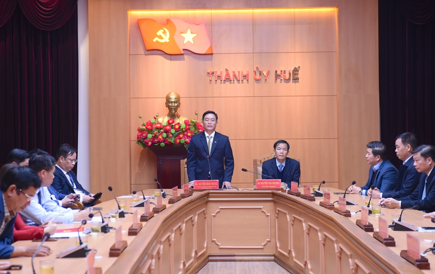 | Bí thư Thành ủy Huế Nguyễn Đình Trung phát biểu giao nhiệm vụ |