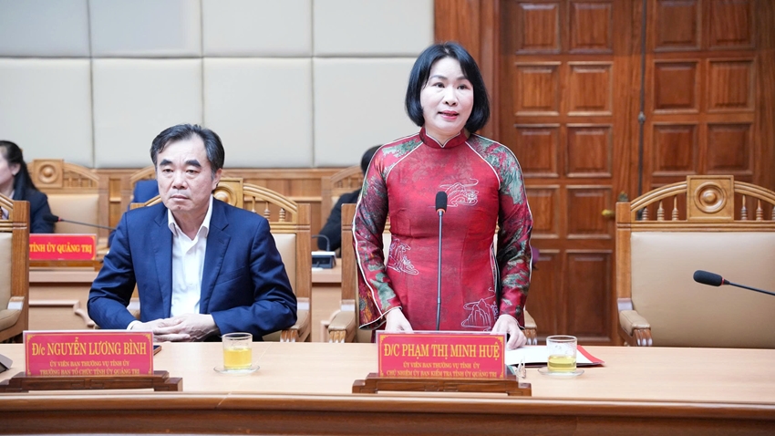 Phát biểu nhận nhiệm vụ, đồng chí Phạm Thị Minh Huệ bày tỏ vinh dự khi được Ban Bí thư tin tưởng giao trọng trách tại tỉnh Quảng Trị, địa phương giàu truyền thống cách mạng. Đồng chí khẳng định sẽ nghiêm túc chấp hành sự lãnh đạo, chỉ đạo của Ban Thường vụ Tỉnh ủy, nhanh chóng tiếp cận công việc, giữ vững bản lĩnh chính trị, phát huy tinh thần đoàn kết, kế thừa và phát huy những kết quả, kinh nghiệm quý báu của các thế hệ đi trước; thực hiện công tác kiểm tra, giám sát công tâm, khách quan, đúng nguyên tắc, góp phần xây dựng Đảng bộ tỉnh Quảng Trị ngày càng trong sạch, vững mạnh.