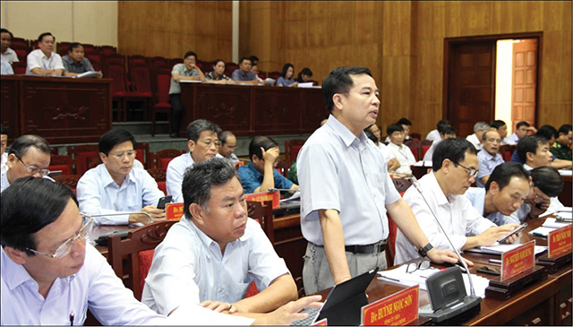 Sở Y tế là một trong những đơn vị được đánh giá làm tốt công tác tổ chức cán bộ theo tinh thần Nghị quyết Trung ương 7 (khóa XII) (Trong ảnh: Ông Nguyễn Nam Hùng, Giám đốc Sở Y tế phát biểu tại một diễn đàn của hội nghị Tỉnh ủy liên quan đến công tác cán bộ). Ảnh: Anh Phong