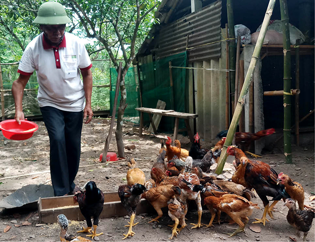 Năm nay bước qua tuổi 73, nhưng ông Giỏng vẫn hoạt bát, nhanh nhẹn. Vừa cho gà ăn, ông vừa tâm sự: Năm 1984, được nghỉ hưu theo chế độ, tôi chủ yếu chăn nuôi, trồng trọt và tham gia công tác tại Chi hội CCB tổ dân phố Khánh Mỹ, thị trấn Phong Điền.