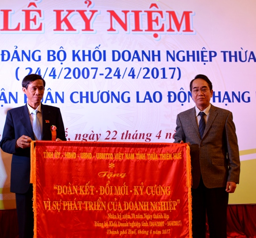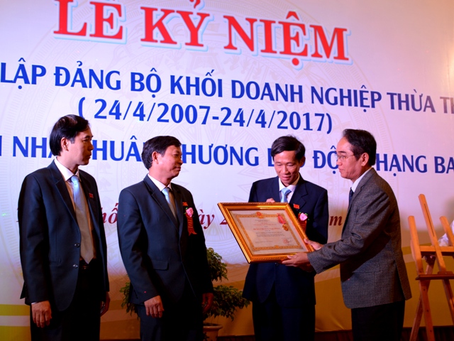 Ngoài được Chủ tịch Nước tặng Huân chương Lao động hạng Ba, dịp này, Đảng bộ Khối Doanh nghiệp tỉnh cũng vinh dự được Tỉnh ủy, HĐND, UBND, UBMTTQ Việt Nam tỉnh tặng lẵng hoa chúc mừng và bức trướng mang dòng chữ: “Đoàn kết – Đổi mới – Kỷ cương, vì sự phát triển của doanh nghiệp”; Đảng ủy Khối Doanh nghiệp Trung ương trao tặng Kỷ niệm chương cho 16 cá nhân có nhiều đóng góp cho sự nghiệp xây dựng Đảng trong doanh nghiệp tỉnh Thừa Thiên Huế.