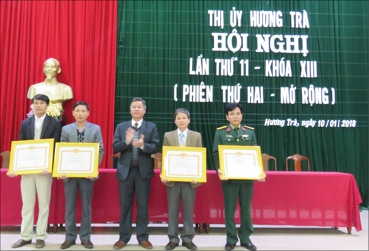Bí thư Thị ủy Hương Trà trao bằng khen cho các đơn vị được công nhân "trong sạch vững mạnh tiêu biểu 2017"
