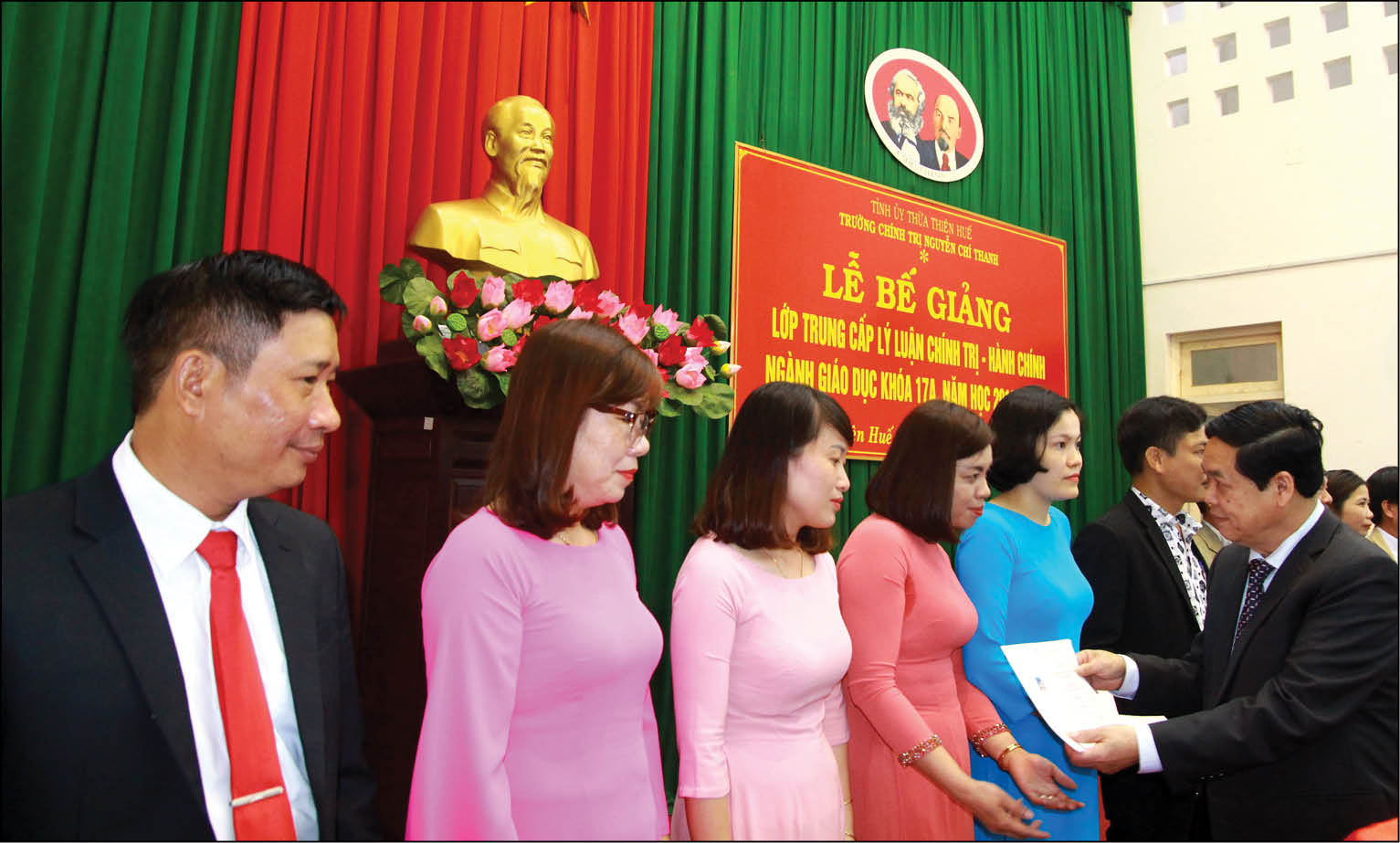 Thường xuyên bồi dưỡng lý luận chính trị cho đội ngũ cán bộ, đảng viên là việc làm thường xuyên của tổ chức Đảng (Trong ảnh: Trường Chính trị Nguyễn Chí Thanh trao bằng trung cấp chính trị cho các học viên)