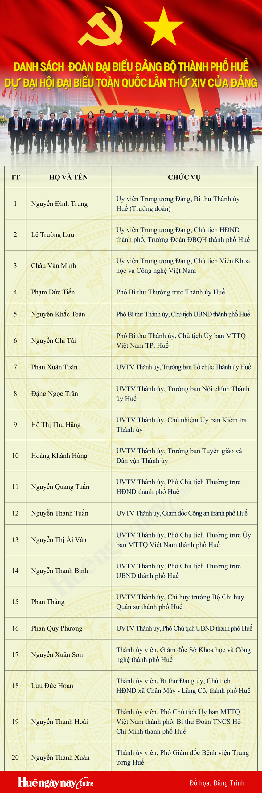 Danh sách đoàn đại biểu Đảng bộ TP. Huế dự Đại hội đại biểu toàn quốc lần thứ XIV của Đảng
