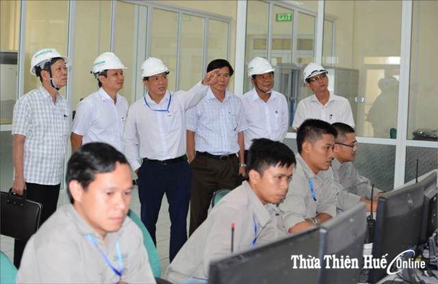 Bí thư Tỉnh ủy Lê Trường Lưu (đứng thứ 2 từ trái qua) kiểm tra hoạt động sản xuất kinh doanh tại Nhà máy Xi măng Đồng Lâm. Ảnh: Anh Phong