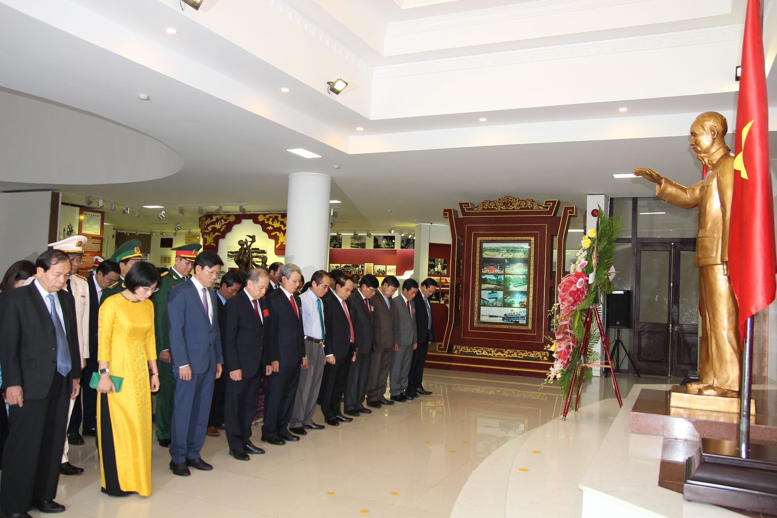 Sau khi trang trọng tiến hành dâng hoa, Bí thư Tỉnh ủy Lê Trường Lưu và đoàn đại biểu kính cẩn nghiêng mình trước chân dung Chủ tịch Hồ Chí Minh. Đồng thời, lắng nghe lời căn dặn của Người đối với tổ chức Đảng và cán bộ, đảng viên.