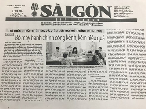 Báo Sài Gòn Giải Phóng có 4 bài liên tiếp về “Thí điểm nhất thể hóa và việc đổi mới hệ thống chính trị” của tác giả Trần Lưu, Quốc Khánh. Đây là kết quả của quá trình thâm nhập thực tế, gặp gỡ, trao đổi, tiếp xúc lấy ý kiến của lãnh đạo các ban, bộ, ngành, đã chỉ ra những mặt được, khó khăn mà hai địa phương Hà Giang và Quảng Ninh đang gặp phải trong quá trình thực hiện chủ trương Bí thư đồng thời là chủ tịch, từ đó đặt ra yêu cầu và các giải pháp đổi mới hệ thống chính trị trong thời gian tới.