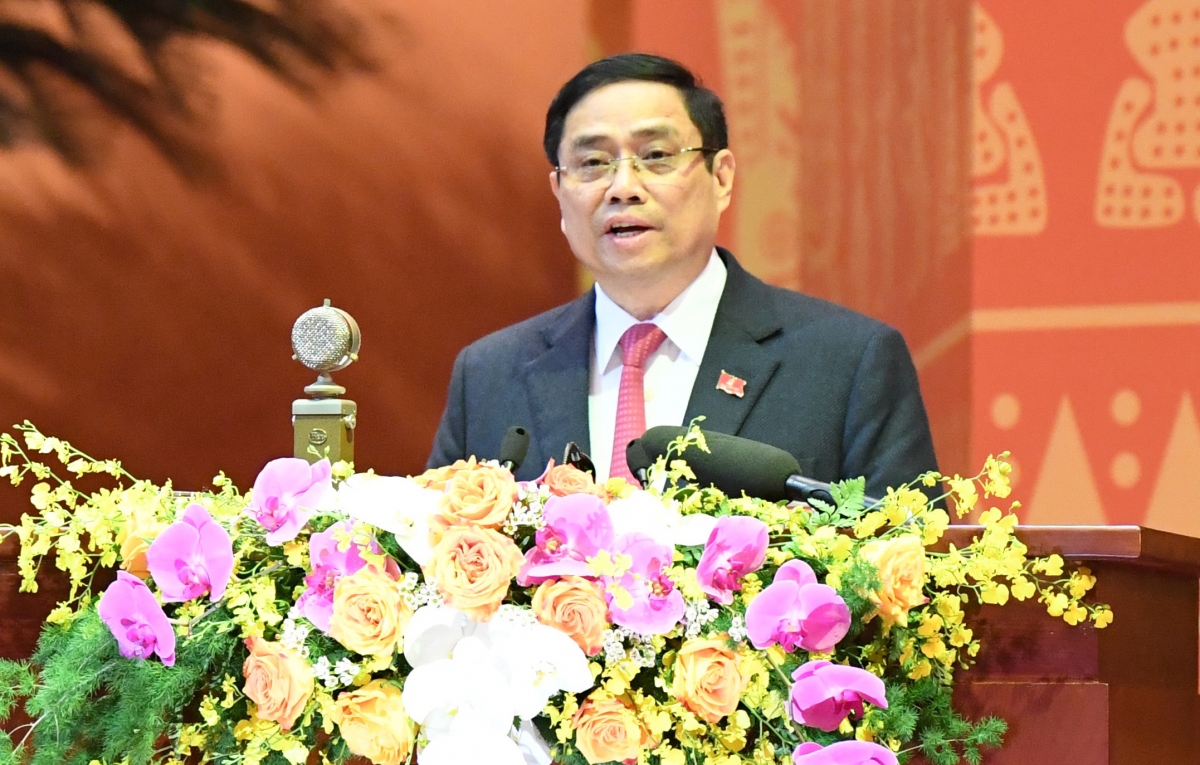 Ông Phạm Minh Chính - Ủy viên Bộ Chính trị, Trưởng Ban Tổ chức Trung ương trình bày dự thảo Quy chế làm việc, Quy chế bầu cử tại Đại hội XIII tại phiên trù bị.