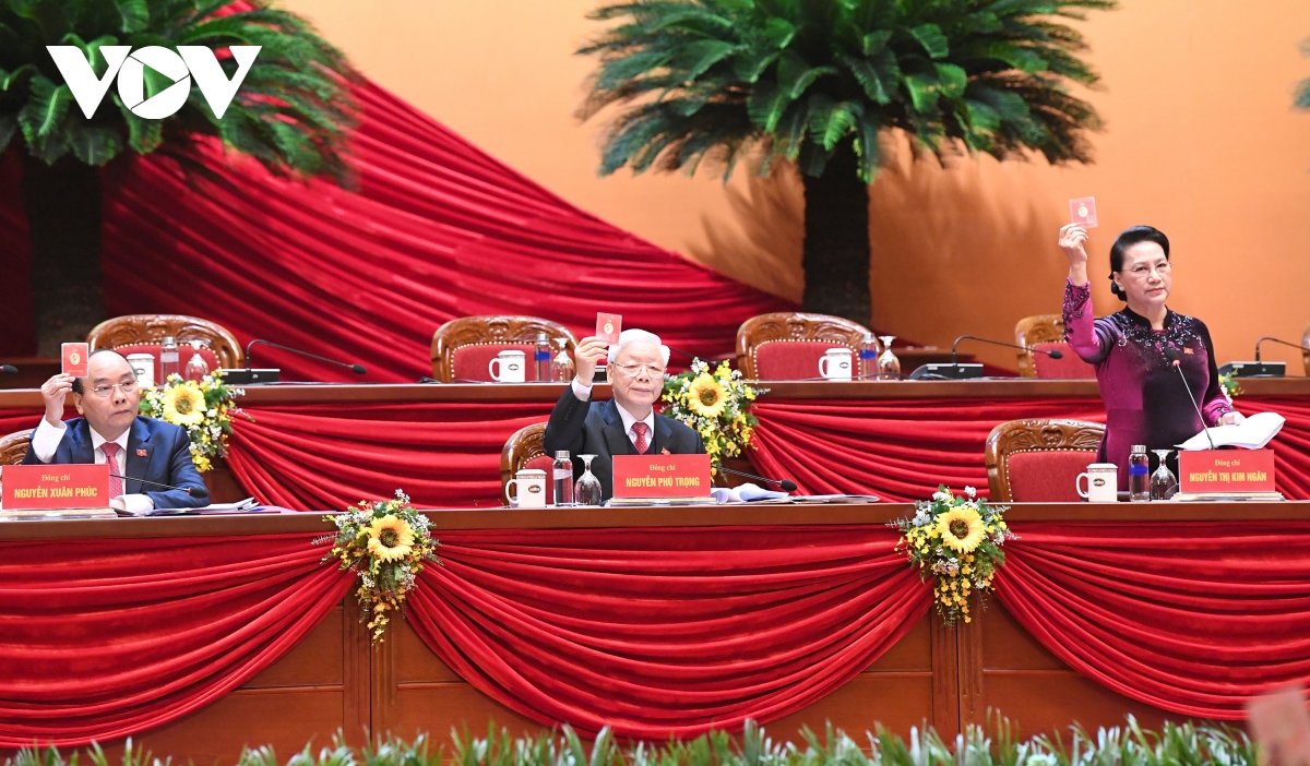 Các đại biểu biểu quyết thông qua các nội dung tại phiên trù bị Đại hội lần thứ XIII của Đảng.