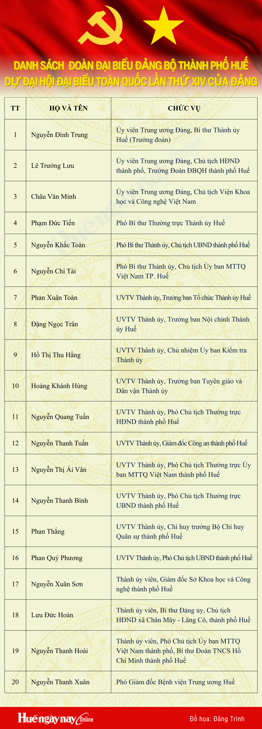| Đoàn đại biểu Huế tham dự Đại hội với 20 đại biểu |