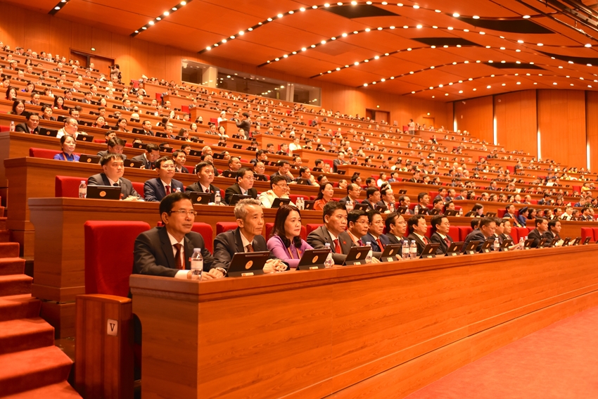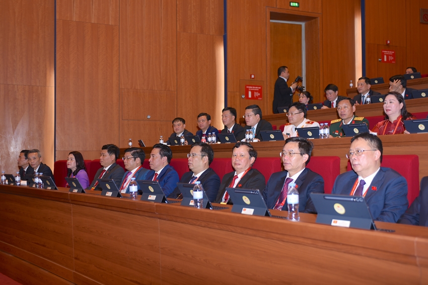 | Đoàn đại biểu thành phố trong phiên khai mạc của Đại hội |