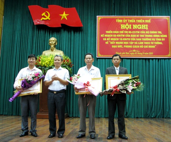Dịp này, Ban Thường vụ Tỉnh ủy tặng hoa chúc mừng và trao Bằng khen của Thủ tướng Chính phủ cho 4 tập thể, 6 cá nhân có thành tích trong “Học tập và làm theo tấm gương đạo đức Hồ Chí Minh giai đoạn 2011 – 2015, góp phần vào sự nghiệp xây dựng CNXH và bảo vệ Tổ quốc”.