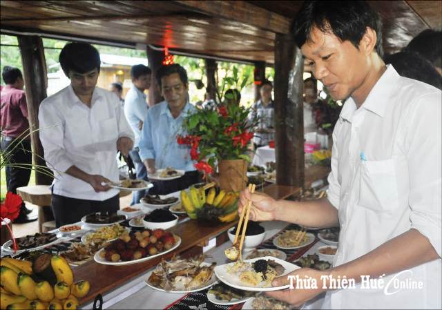 Du khách tại điểm du lịch cộng đồng ở xã Hồng Hạ