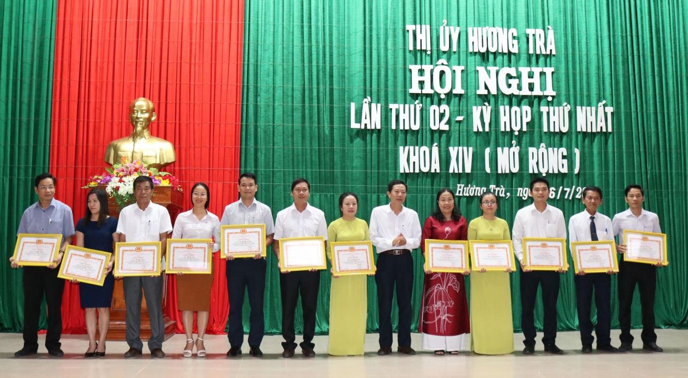 Dịp này, Thị uỷ Hương Trà đã tặng giấy khen cho 11 tập thể và 37 cá nhân đã hoàn thành xuất sắc nhiệm vụ tham mưu, phục vụ Đại hội Đảng bộ thị xã lần thứ XIV.