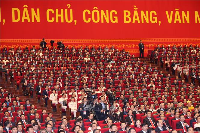 Đại hội nghe đồng chí Nguyễn Phú Trọng, Tổng Bí thư Ban Chấp hành Trung ương Đảng, Chủ tịch nước CHXHCN Việt Nam đọc Báo cáo chính trị của Ban Chấp hành Trung ương Đảng khóa XII và các văn kiện trình Đại hội. Ảnh: TTXVN