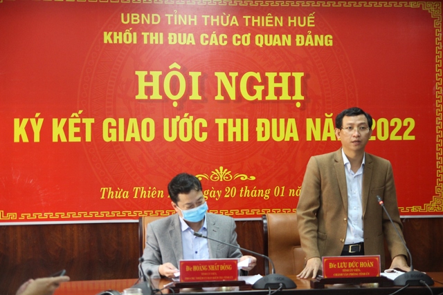 Trên cơ sở thảo luận, đóng góp ý kiến, Khối thi đua các Cơ quan Đảng gồm: UBKT Tỉnh ủy, Văn phòng Tỉnh ủy, Đảng ủy Khối Cơ quan và Doanh nghiệp tỉnh, Ban Nội chính Tỉnh ủy, Ban Tổ chức Tỉnh ủy, Ban Dân vận Tỉnh ủy, Ban Tuyên giáo Tỉnh ủy, Trường Chính trị Nguyễn Chí Thanh và Báo Thừa Thiên Huế thống nhất, ký kết giao ước thi đua với 6 nội dung cụ thể.