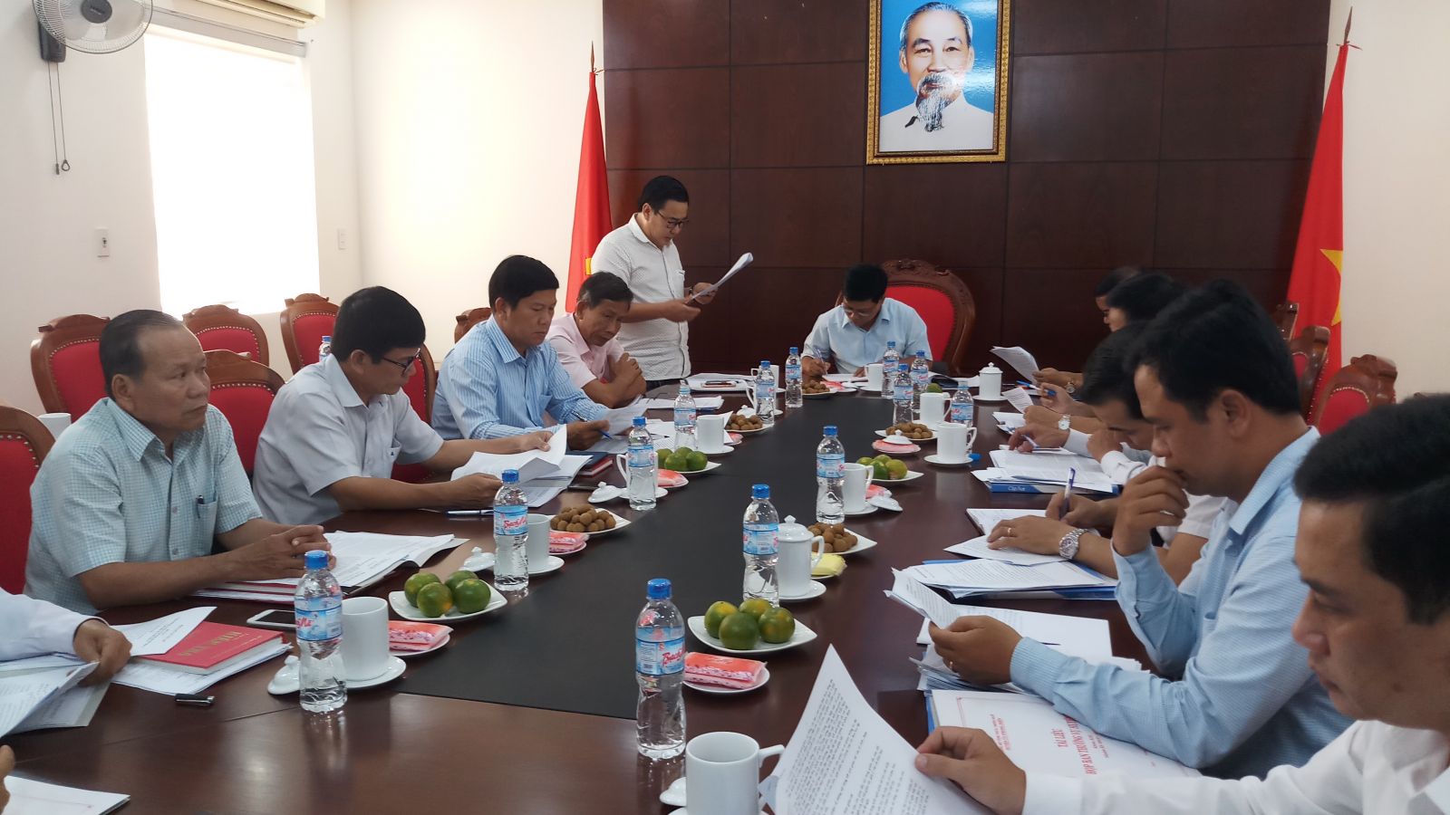 Ông Võ Văn Vui, Phó Bí thư phụ trách Đảng bộ huyện Phong Điền báo cáo tình hình với đoàn kiểm tra, giám sát