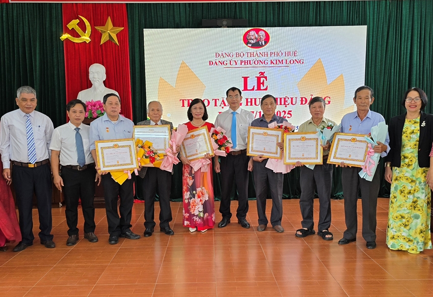 HNN.VN - Ngày 11/11, Đảng uỷ phường Kim Long long trọng tổ chức Lễ trao tặng Huy hiệu Đảng đợt 7/11/2025 cho các đảng viên. Đây là sự ghi nhận của Ban Thường vụ Thành ủy đối với quá trình cống hiến, rèn luyện và giữ vững phẩm chất của những đảng viên nhiều năm tuổi Đảng.
