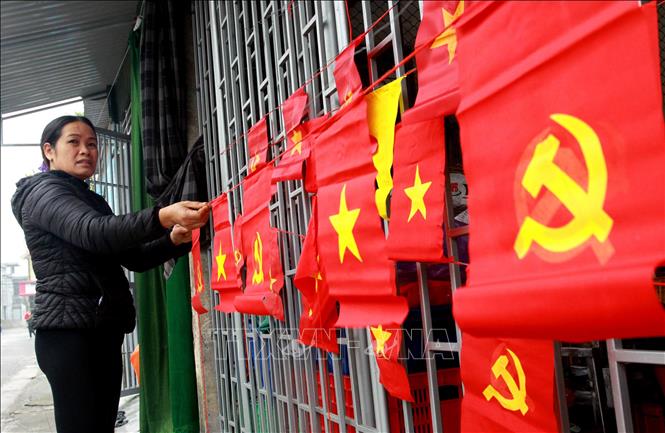 Người dân xã Vũ Tây (Kiến Xương, Thái Bình) trang hoàng đường làng ngõ xóm chào đón năm mới 2019 và kỷ niệm 89 năm Ngày thành lập Đảng Cộng sản Việt Nam. Ảnh: Thế Duyệt/TTXVN